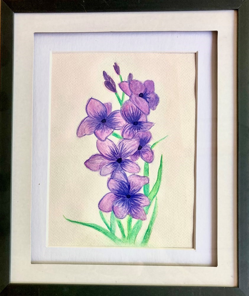 Sophia “Phia” Collins (14) 8x10 Framed Water Color “Gladiolus” represents strength and resilience. They have been recurring throughout Mrs. Norman’s career, appearing on multiple stages that she has performed on, and as her funeral flower. Sophia has been a student of the Jessye Norman School of the Arts since 2014. She is an avid artist who loves watercolors and specializes in pet portraiture.