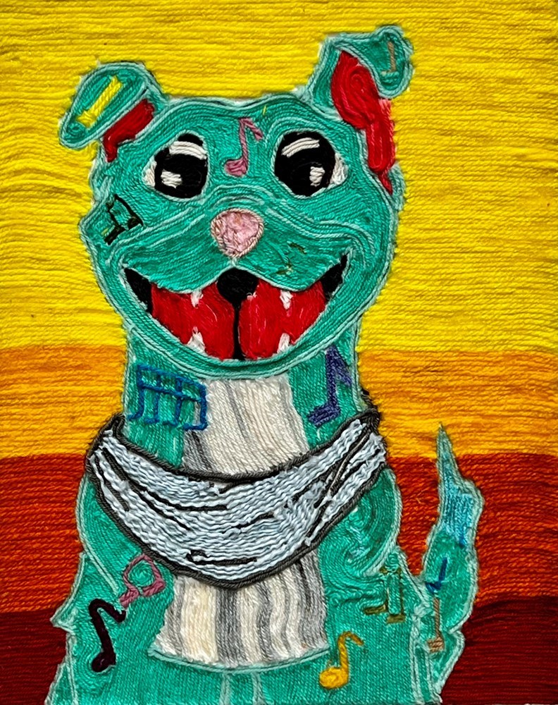 Allana Rodriquez (11) Alto 16x20 Mixed Media (yarn) Meet Alto. He is made out of yarn for a more textured approach. Now you may be wondering “Why a dog? I kind of understand the music notes, but the dog?” Well, dogs were one of Jesseye Norman’s favorite animals, specifically, Pit-Bulls. He stands out in a yellow background because this was one of Jesseye Norman’s favorite colors. Alto is more complicated than you think!